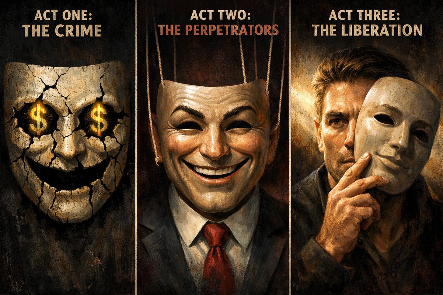 This guide synthesizes over a month of research into a single document. It traces the crime from its earliest symptoms to its deepest roots, and finally to the liberation that becomes possible once you see the full picture.