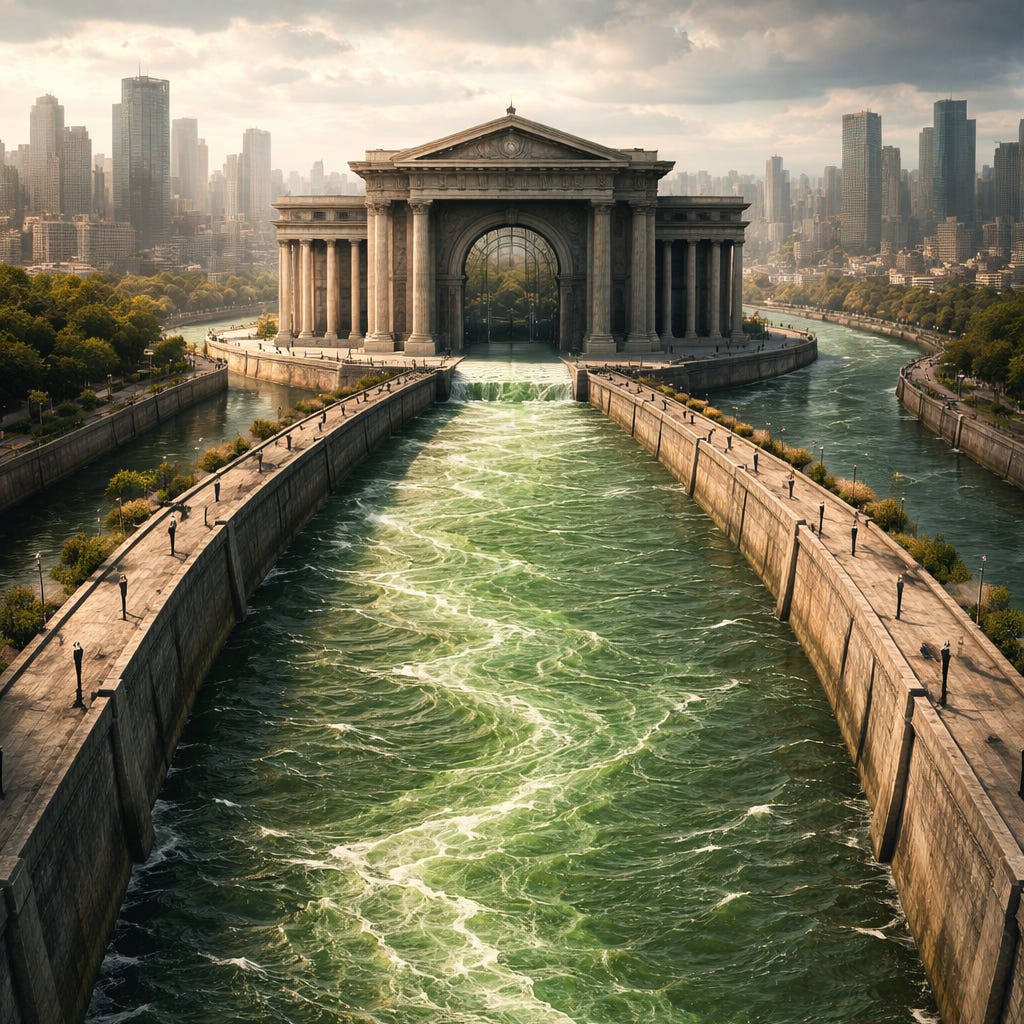 This same logic extends into human systems. Money “flows.” Capital has “liquidity.” Economies need “stability.” We speak of “currency”—from current. We talk about “liquid assets,” “frozen accounts,” “cash flow,” and “offshore holdings.” The language is consistent because the underlying model is consistent.